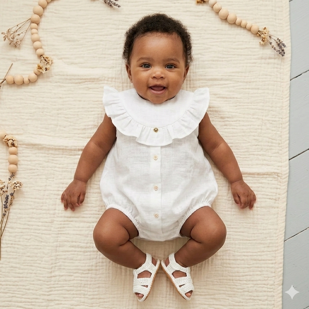 Banho de Sol Bubble com pala redonda de linho, a escolha perfeita para o conforto e estilo do seu bebê. Confeccionado em tecido leve e respirável, este macacão proporciona frescor nos dias quentes, ideal para passeios ao ar livre e momentos de brincadeira. A pala redonda com delicados babados adiciona um toque clássico e charmoso, valorizando a produção sem abrir mão da praticidade.