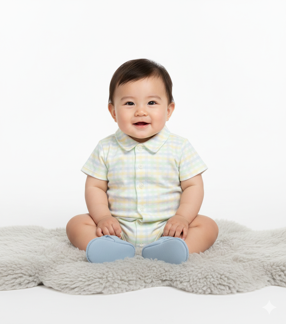 Um modelo cheio de estilo e praticidade para os pequenos, perfeito para ocasiões especiais e dias mais quentes. Este macacão combina charme clássico com funcionalidade: