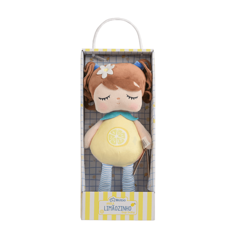 A Angela Fruta Limãozinho da Metoo é um verdadeiro encanto em forma de boneca! Com um look inspirado na linda cor e beleza do limão, ela combina charme, delicadeza e diversão em um só produto. Seu corpinho temático, toque aveludado e olhos fechadinhos transmitem aconchego e tranquilidade — perfeita para ser a melhor companhia dos pequenos desde o nascimento.