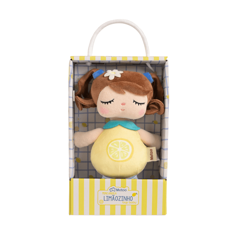 A Mini Angela Limãozinho da Metoo é puro encanto! Com seu corpinho temático de limão, ela traz um ar divertido e delicado, sendo a companheira ideal para os momentos de sono ou para as brincadeiras cheias de imaginação. Seu toque aveludado e as cores vibrantes tornam essa bonequinha perfeita para decorar o quartinho, compor temas de festas e presentear com muito carinho. E o melhor: é colecionável e feita com pelúcia super macia. Uma verdadeira doçura que vai conquistar todos à primeira vista!