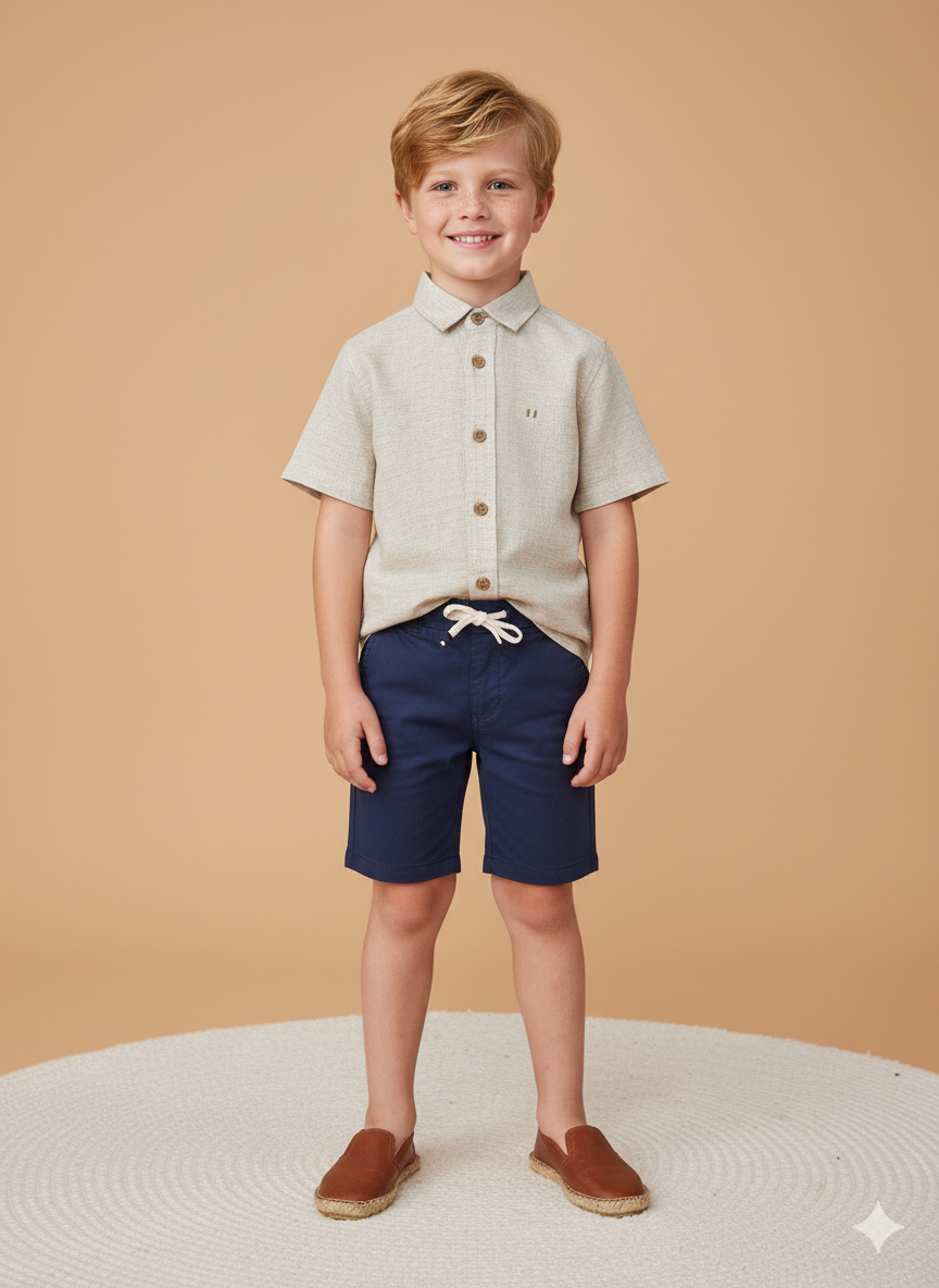 Camisa Infantil Bege com Botões – Elegância leve para ocasiões especiais