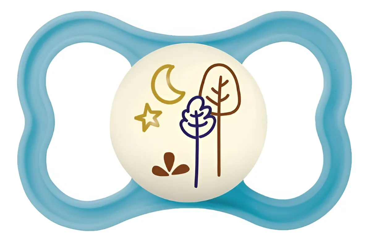 A Chupeta MAM Air Night com botão que brilha no escuro foi desenvolvida em parceria com especialistas da saúde. Possui disco extraventilado especialmente delicado com a pele.