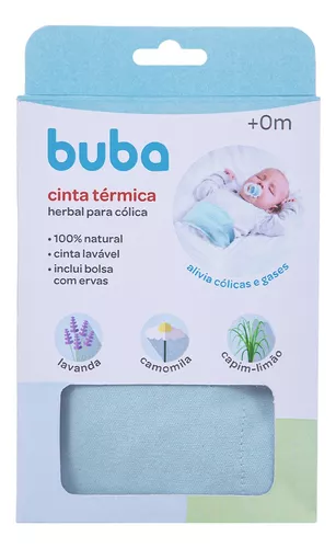 A cinta térmica herbal Buba foi desenvolvida para auxiliar no alívio das terríveis cólicas e também os gases que, acometem geralmente os bebês nos seus primeiros meses de vida. Esta cinta térmica deve ser aquecida e colocada na barriguinha do bebê, assim, o calor irá ajudar o intestino do bebê a trabalhar direitinho. Além de térmica, ela também possui as ervas calmantes lavanda, camomila e capim-limão.