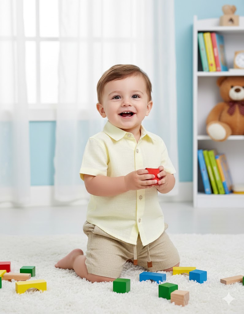 Conjunto Camisa MC Amarelo Manteiga e Bermuda Bege 01 - Anjos Baby