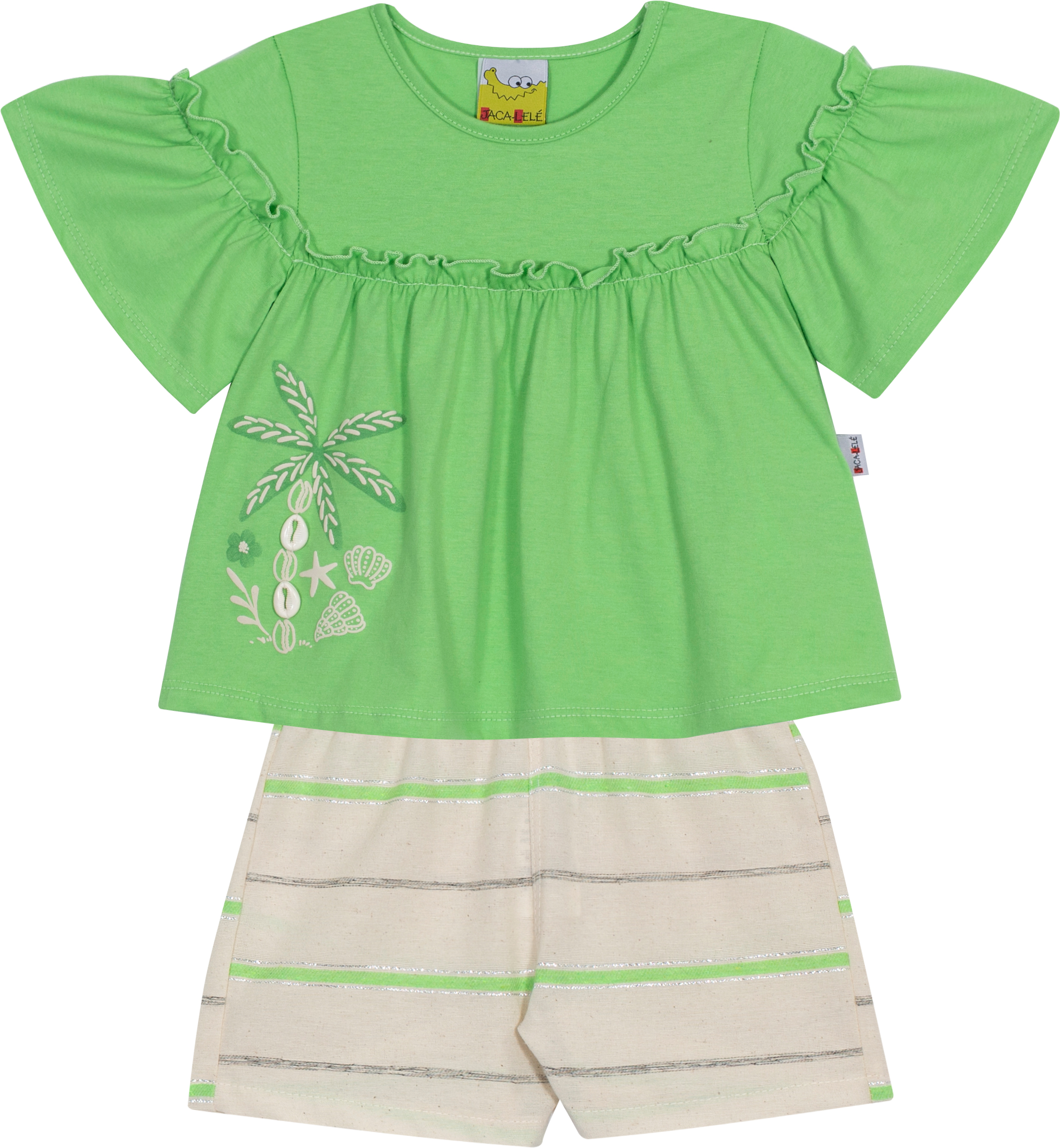 Inspirado na leveza do verão, este conjunto é ideal para meninas que adoram se vestir com conforto e charme. Com estampa temática e acabamento delicado, ele une praticidade e personalidade em uma combinação encantadora.