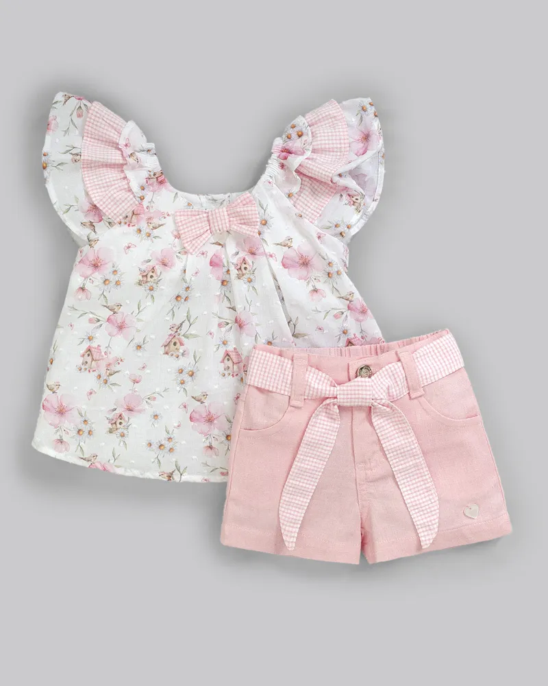 Conjunto Fem Bata Florida e Short em Linho Rosa M - Anjos Baby