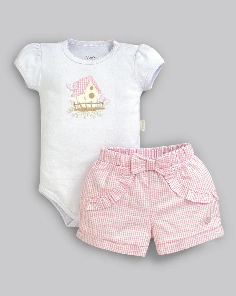 Conjunto Fem Body e Short Anarruga Rosa Listrado M - Anjos Baby