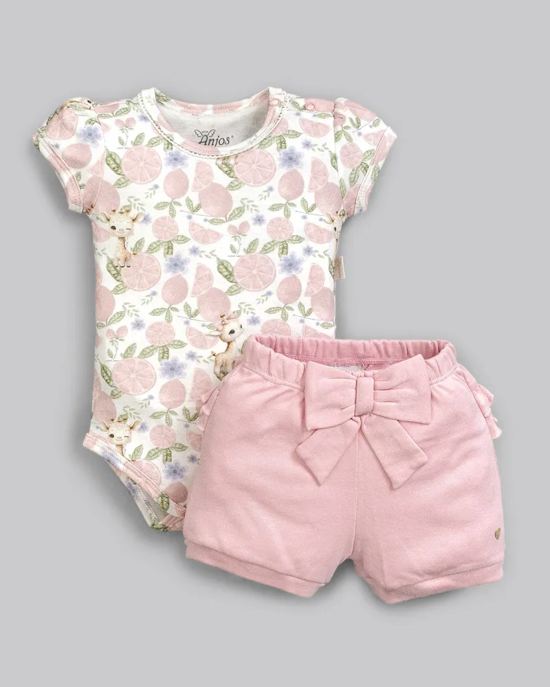 Maciez e conforto para a sua bebê, este conjunto oferece um toque suave e aconchegante, ideal para o dia a dia. O body garante praticidade, enquanto o short proporciona liberdade de movimento, unindo charme e bem-estar para a sua pequena.....
