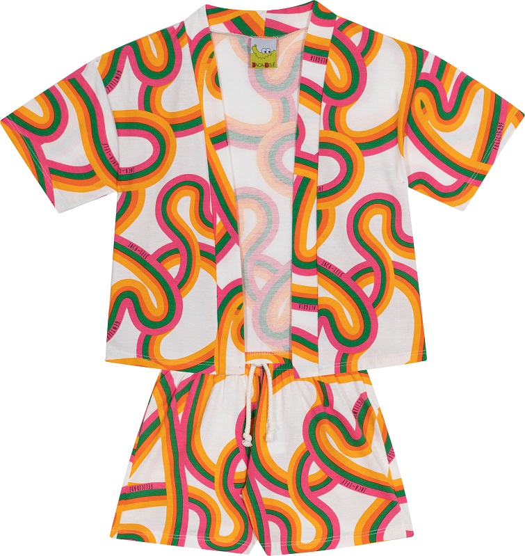 Conjunto Fem Kimono e Short Colorido - Jaca Lelé