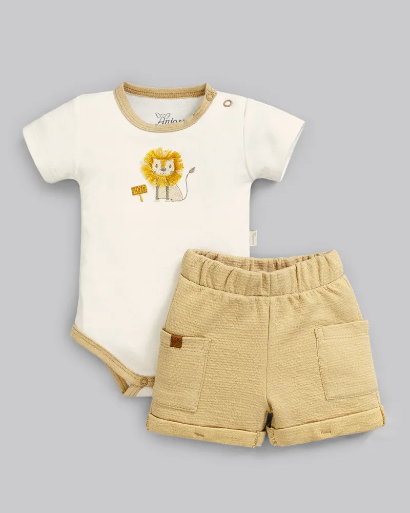 Conjunto Masc Body Branco Leão e Short Bege RN - Anjos Baby