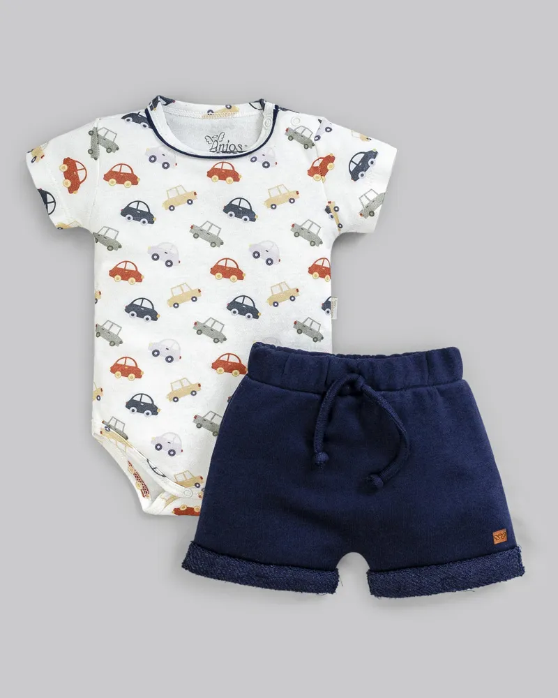 Conjunto Masc Body Carros e bermuda Azul Marinho RN - Anjos Baby