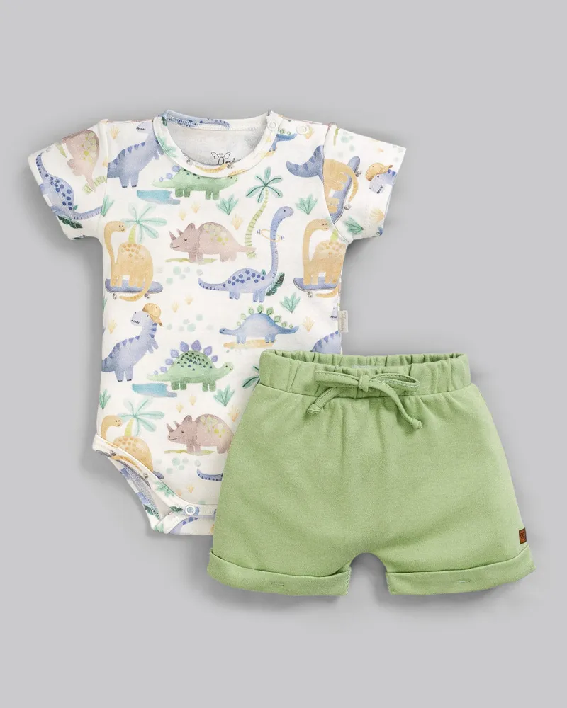 Conjunto Masc Body Dinos e Short Verde Suedine P - Anjos Baby