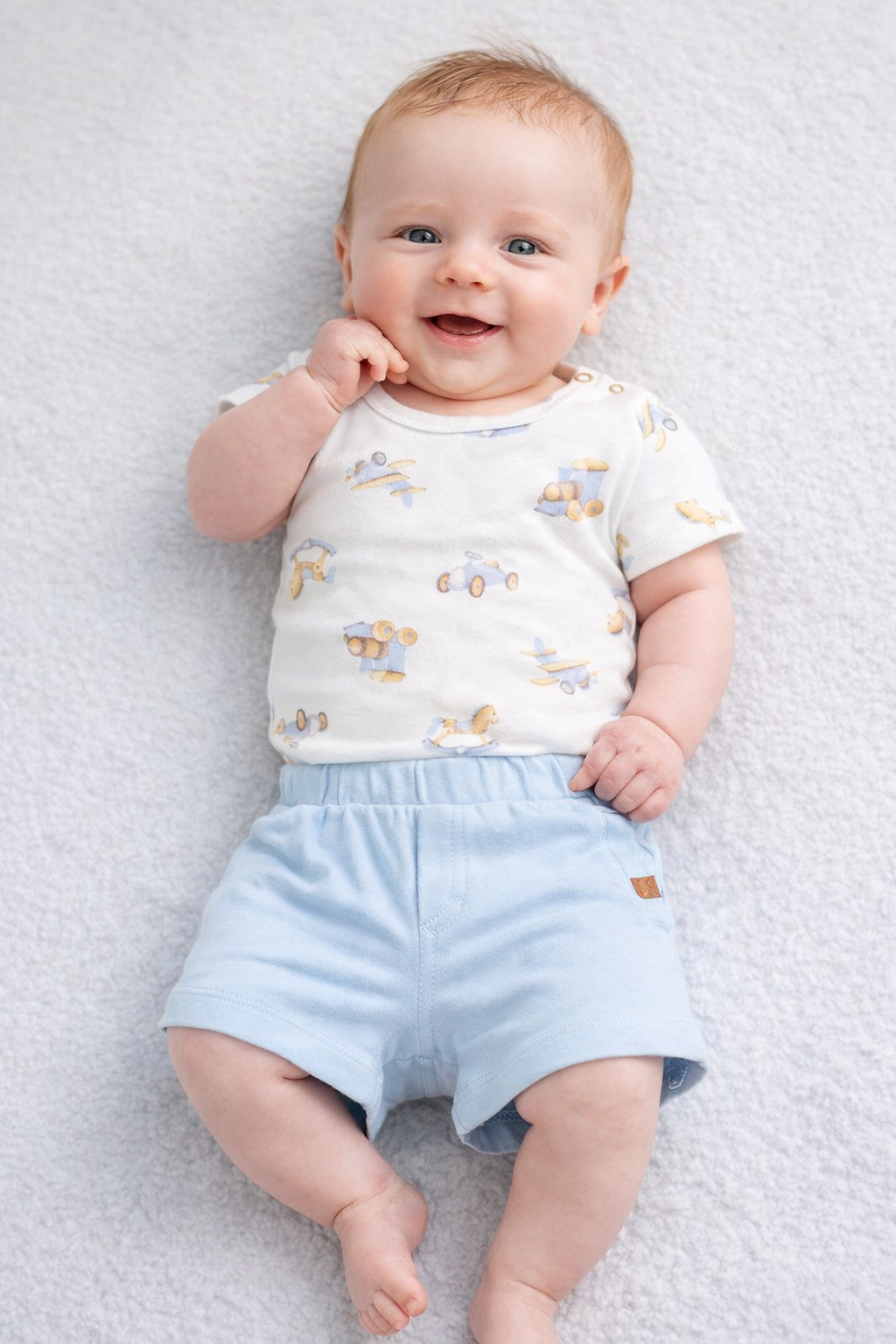 Conjunto Masc Body Off White Brinquedos e Short Azul P - Anjos Baby