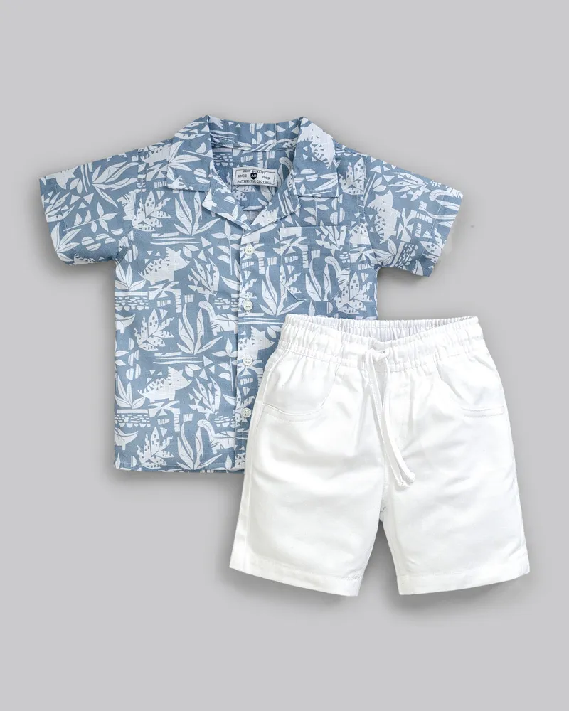 Conjunto Masc Camisa Estampa Dinossauros e Bermuda Branca 01 - Anjos Baby