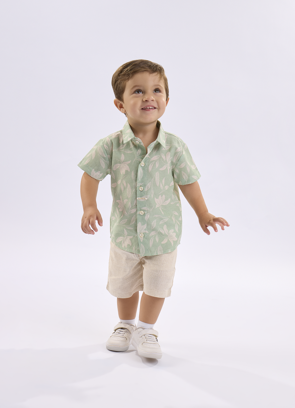 Conjunto Masc Camisa Florida Verde e Bermuda Gelo - Nini e Bambini