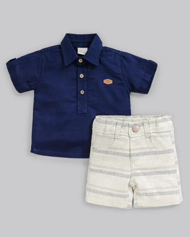 Conjunto Masc Camisa MC Azul e Bermuda Viscolinho M - Anjos Baby