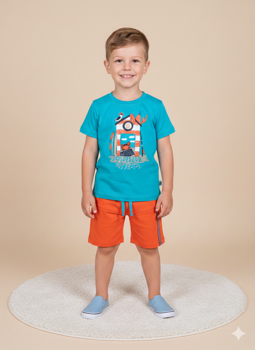 Macacão Infantil “Explorador das Praias” – Estilo vibrante e conforto para os dias de verão
