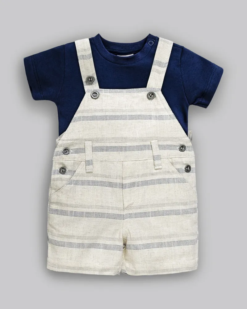 Conjunto Masc Camiseta Azul e Jardineira Areia M - Anjos Baby
