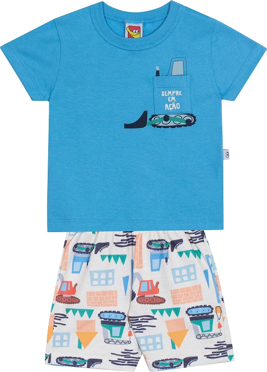 Ideal para meninos cheios de energia e imaginação, este conjunto une conforto e criatividade em uma combinação vibrante e temática. Com estampa de veículos de construção e cores alegres, é perfeito para dias de brincadeira e aventura.