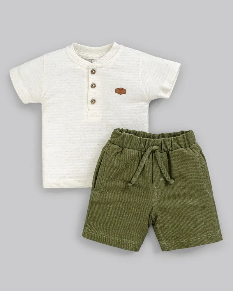 Conjunto Masc Camiseta e Bermuda Moletinho Verde M - Anjos Baby