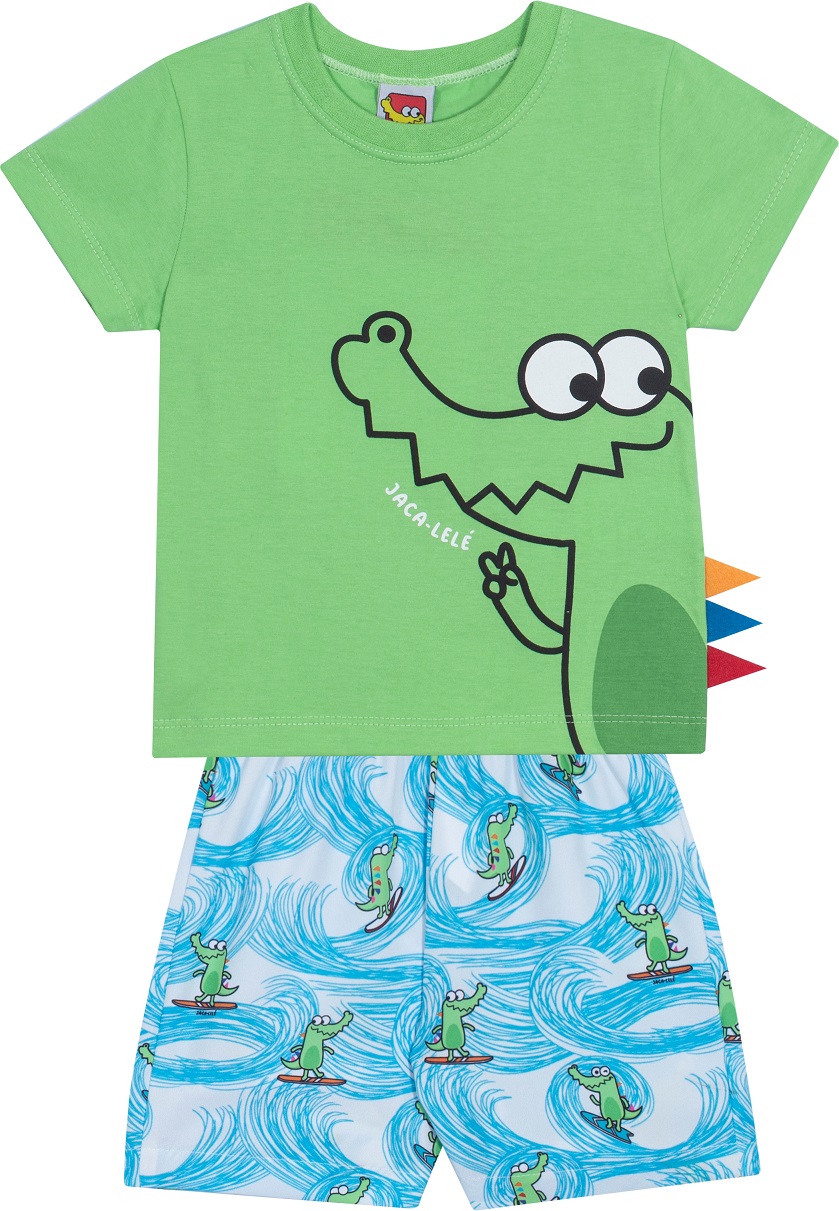 Conjunto Masc Camiseta Verde Jacaré e Bermuda Tactel Surf - Jaca Lelé