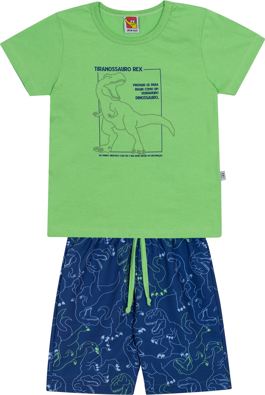 Conjunto Masc Camiseta Verde T-Rex e Bermuda Tactel - Jaca Lelé