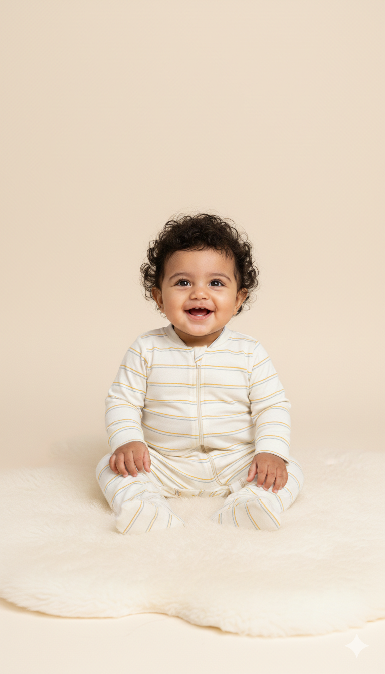 Macacão Bebê Listrado com Zíper Frontal – Conforto e praticidade para os primeiros momentos