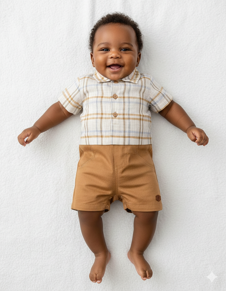 Macacão Curto Masc Maquinetado / Sarja Xadrez M - Anjos Baby