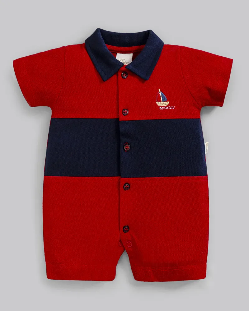 Macacão Curto Masc Piquet Vermelho e Azul Escuro M - Anjos Baby