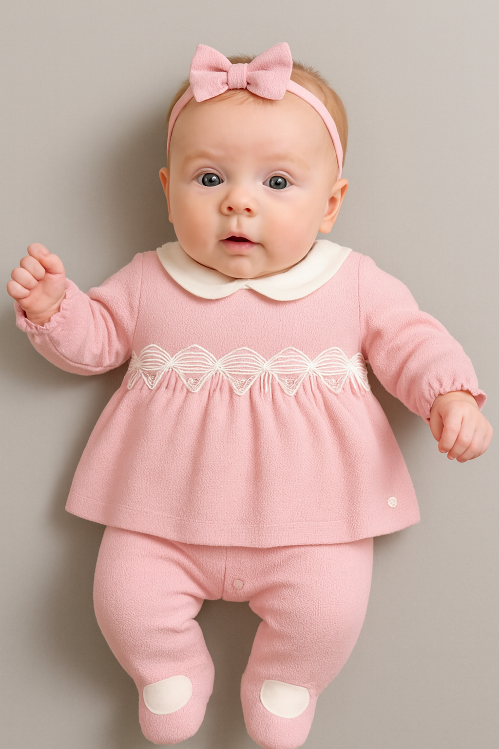Macacão Fem Malha Tricot c/ Laços Rosa P - Anjos Baby