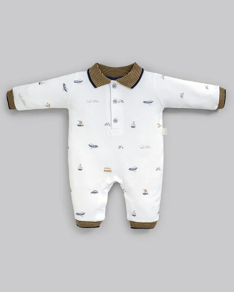 Conforto e estilo para o seu pequeno príncipe. Feito com tecido macio, este macacão proporciona suavidade e liberdade de movimento para o dia a dia do seu bebê. Perfeito para mantê-lo confortável e charmoso em todas as ocasiões.