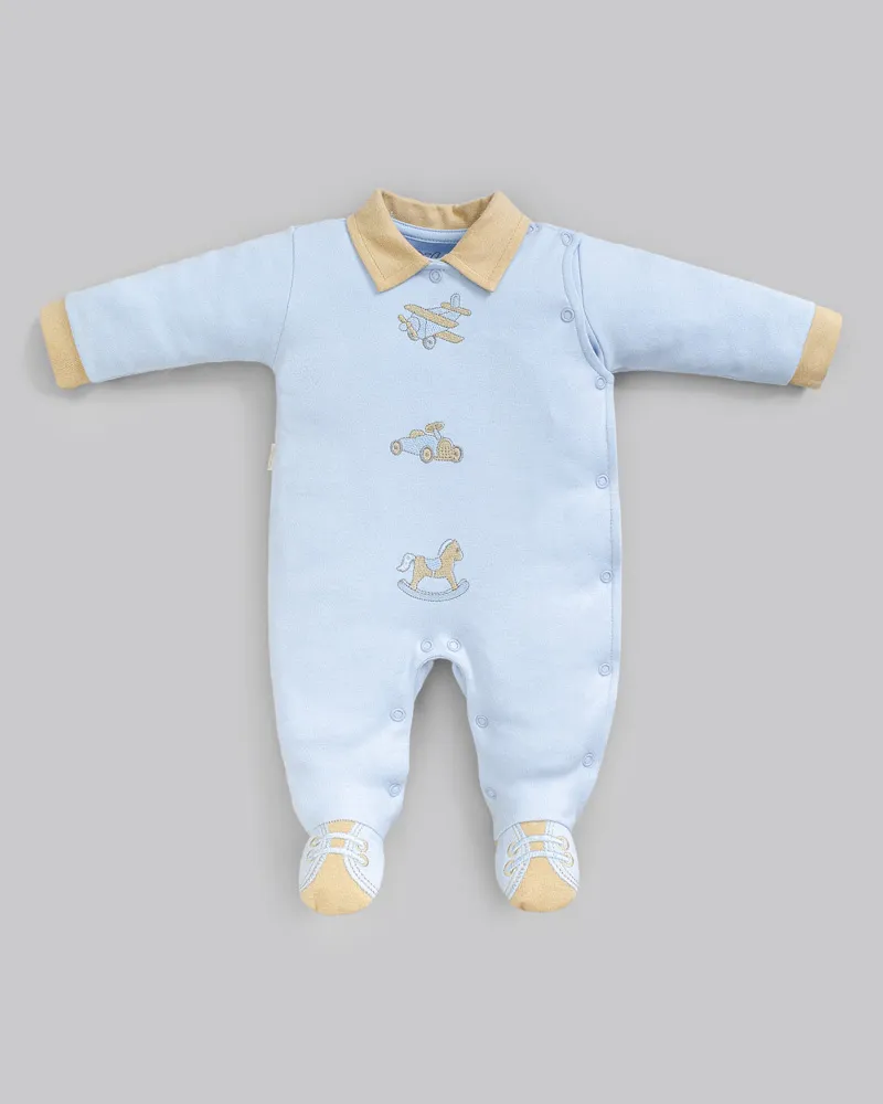 Conforto e estilo para o seu pequeno príncipe. Feito com tecido macio, este macacão proporciona suavidade e liberdade de movimento para o dia a dia do seu bebê. Perfeito para mantê-lo confortável e charmoso em todas as ocasiões.