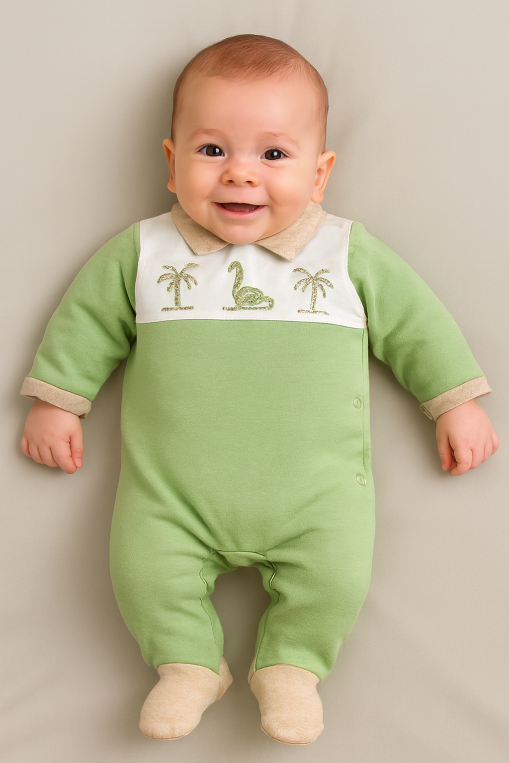 Macacão Masc Suedine Dino Verde RN - Anjos Baby