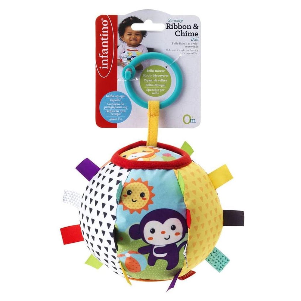 O Móbile Sensorial Redondo com Sino Floresta da Infantino é uma bola de atividade de pelúcia sensorial estimulante para pequenas mãos curiosas. Com personagens e padrões divertidos, agite-o, jogue-o ou role-o! Envolva o sentido do bebê com um delicioso sino e texturas fantásticas. Fitas coloridas brilhantes e imperdíveis mantêm as mãos pequenas e as mentes ocupadas. Possui links para assentos de carro, carrinhos, tapetes de atividades.
