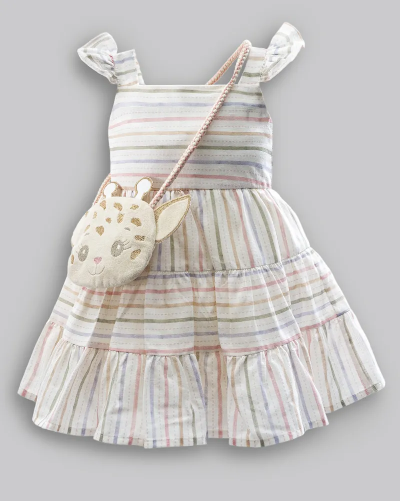 Vestido Maquinetado Listras Coloridas c/ Bolsa - Anjos Baby
