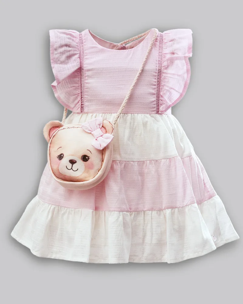 Vestido Maquinetado Rosa c/ Bolsa M - Anjos Baby