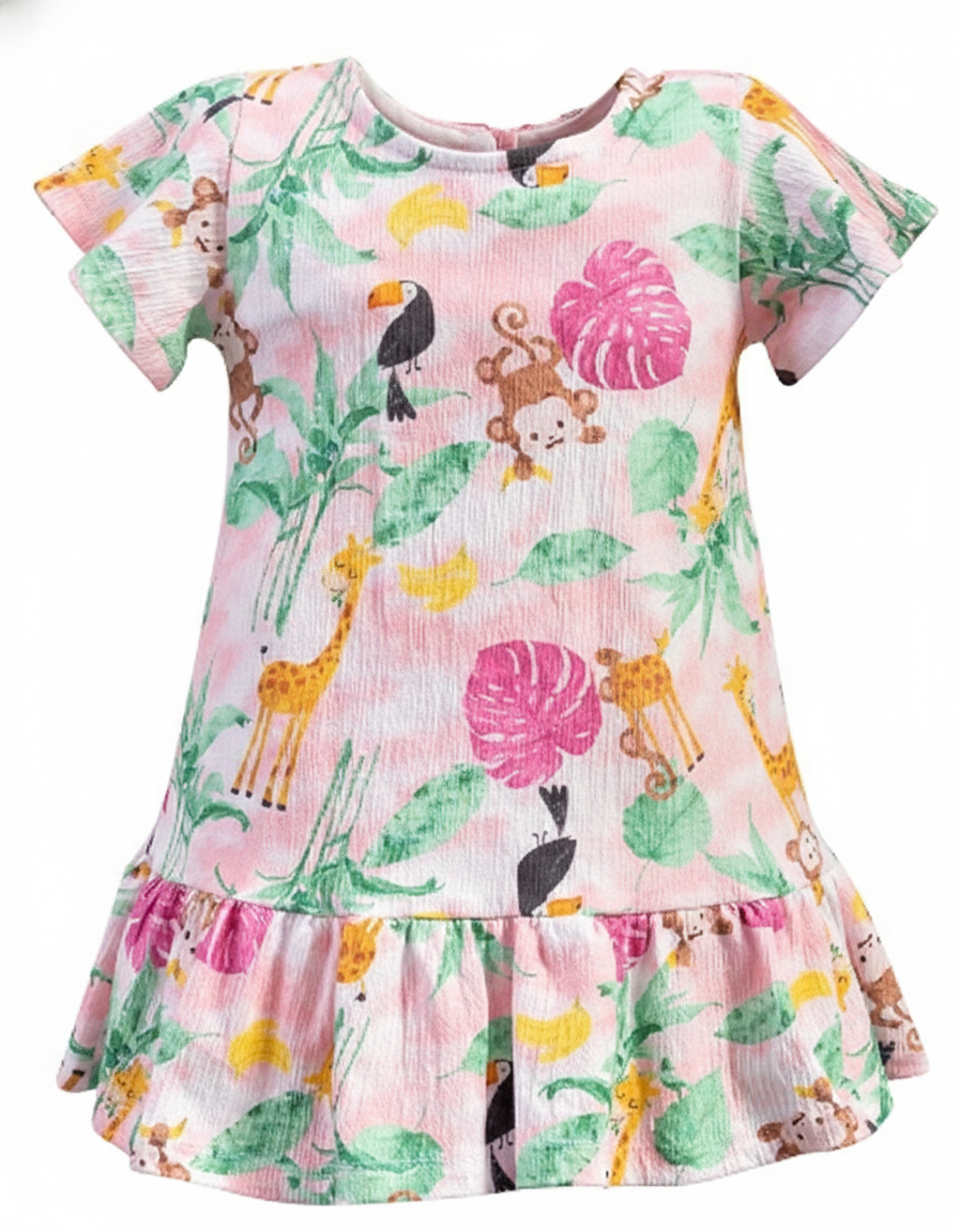 Vestido Rosa Estampado Selva 01-Anjos Baby